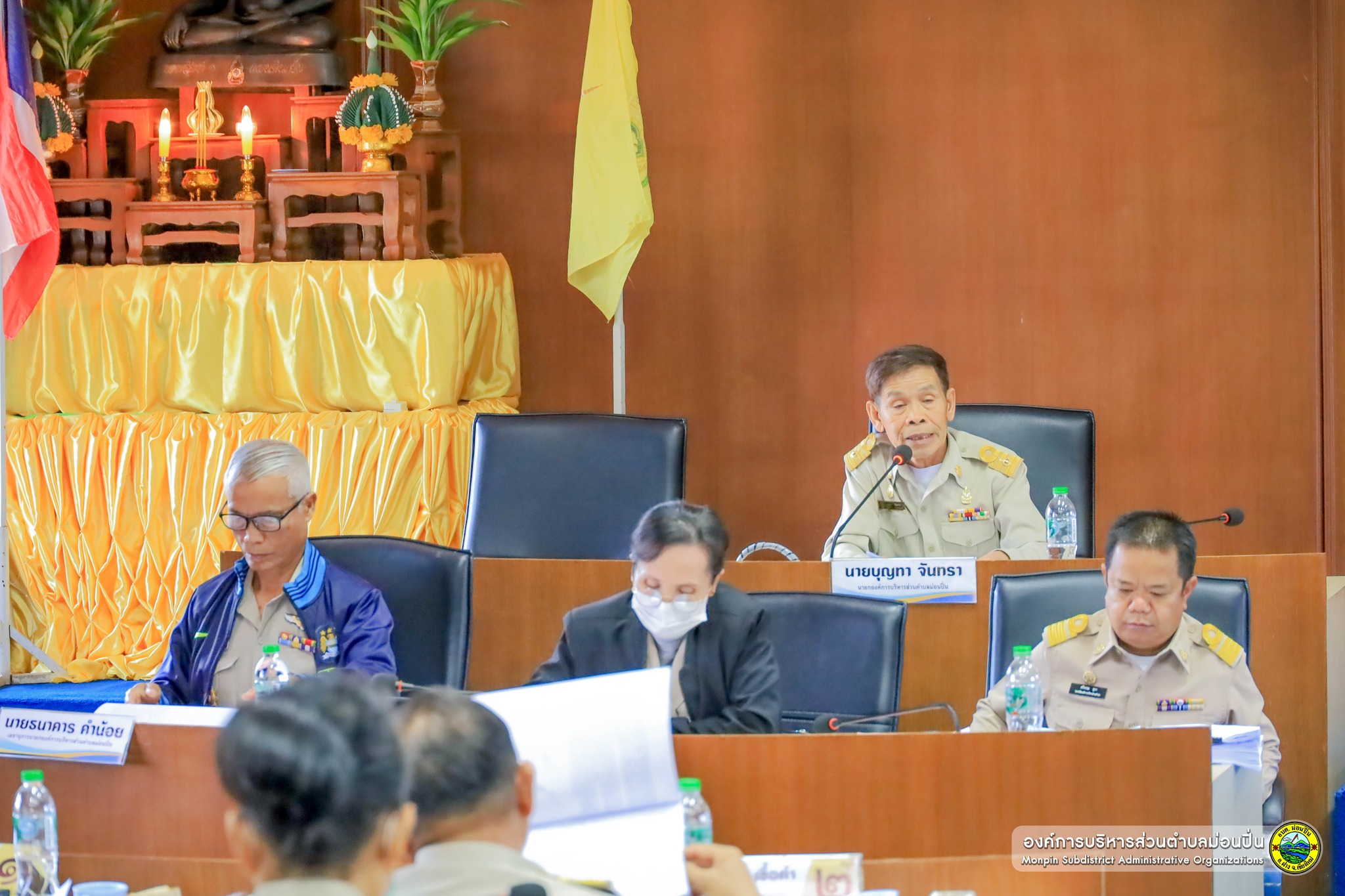 โดยมี นายบุญทา จันทรา นายกองค์การบริหารส่วนตำบลม่อนปิ่น นางอารีย์ สุริยะ รองนายกฯ นายธนาคาร คำน้อย เลขานุการนายกฯ นายณัฏฐพล รินแก้ว ประธานสภา นายเอกภาค จันทรา รองประธานสภา นายพิจิตร บัวผัน เลขานุการสภา พร้อมด้วยสมาชิสภาฯ หัวหน้าส่วนราชการฯ เข้าร่วมประชุม ณ ห้องประชุมสภาองค์การบริหารส่วนตำบลม่อนปิ่น