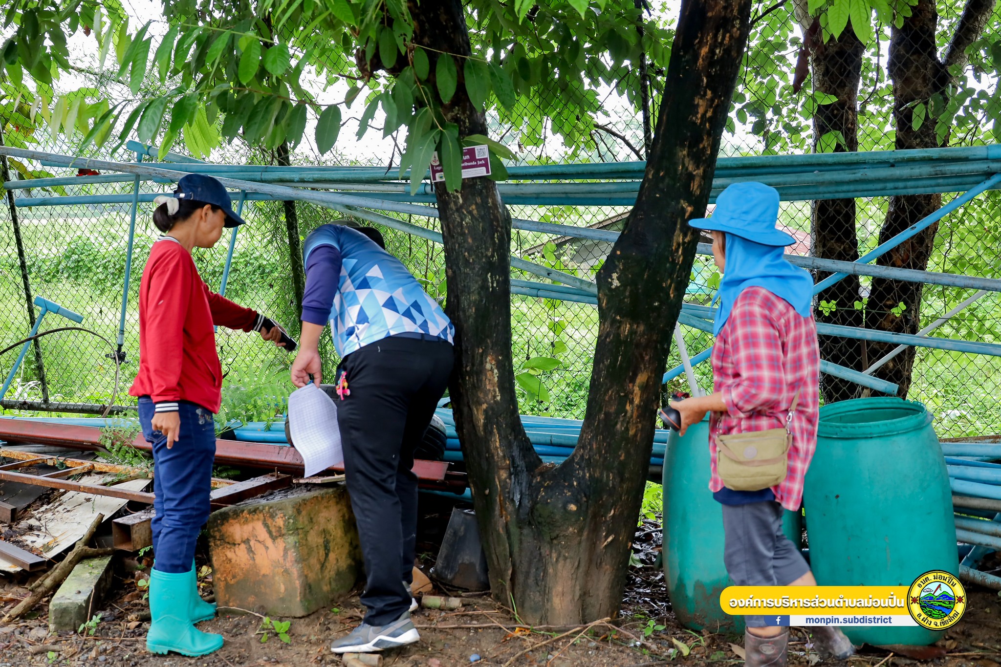 แผนงานสาธารณสุข อบต.ม่อนปิ่น ร่วมกับ โรงพยาบาลส่งเสริมสุขภาพตำบลบ้านม่อนปิ่น อาสาสมัครสาธารณสุขประจําหมู่บ้าน (อสม.) บ้านม่อนปิ่น ลงพื้นที่สำรวจแหล่งน้ำขังและใส่ทรายเทมีฟอส ในจุดเสี่ยงที่อาจเกิดเป็นแหล่งเพาะพันธุ์ลูกน้ำยุงลาย ซึ่งเป็นพาหะของการแพร่ระบาดของโรคไข้เลือดออก ในบริเวณอาคารสำนักงาน องค์การบริหารส่วนตำบลม่อนปิ่น