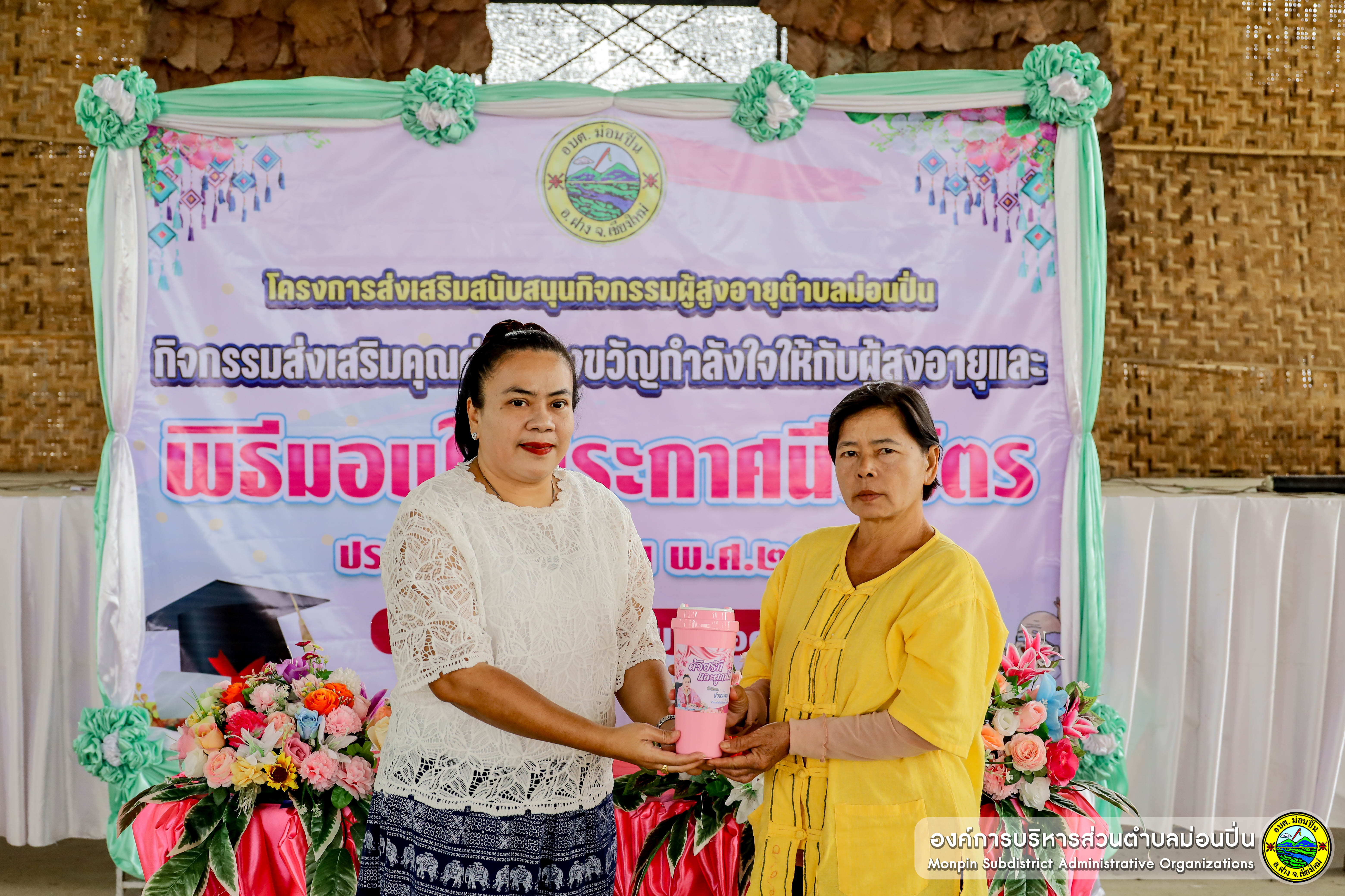 และพิธีมอบใบประกาศนียบัตรให้แก่นักเรียนผู้สูงอายุวุฒิสราญปัญญา รุ่นที่ 4 โดยมี นายบุญทา จันทรา นายก อบต.ม่อนปิ่นเป็นประธาน ฯ พร้อมด้วยคณะผู้บริหาร สมาชิกสภาฯ ร่วมกิจกรรม ณ อาคารอเนกประสงค์ องค์การบริหารส่วนตำบลม่อนปิ่น