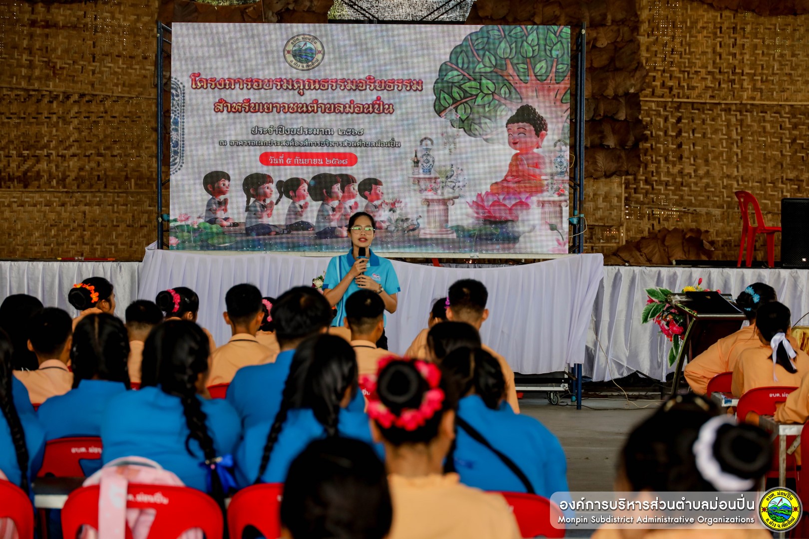 อบต.ม่อนปิ่น จัดโครงการอบรมคุณธรรมจริยธรรมสำหรับเยาวชนตำบลม่อนปิ่น ประจำปีงบประมาณ 2568 เพื่อปลูกฝังคุณธรรมจริยธรรม ตามหลักพุทธศาสนา ให้กับเยาวชนตำบลม่อนปิ่น ปลูกจิตสำนึกในการรักชาติ ศาสนาและจงรักภักดีต่อสถาบันพระมหากษัตริย์ เพื่อให้ความรู้เกี่ยวกับพิษภัยของยาเสพติดให้แก่เยาวชนตำบลม่อนปิ่น