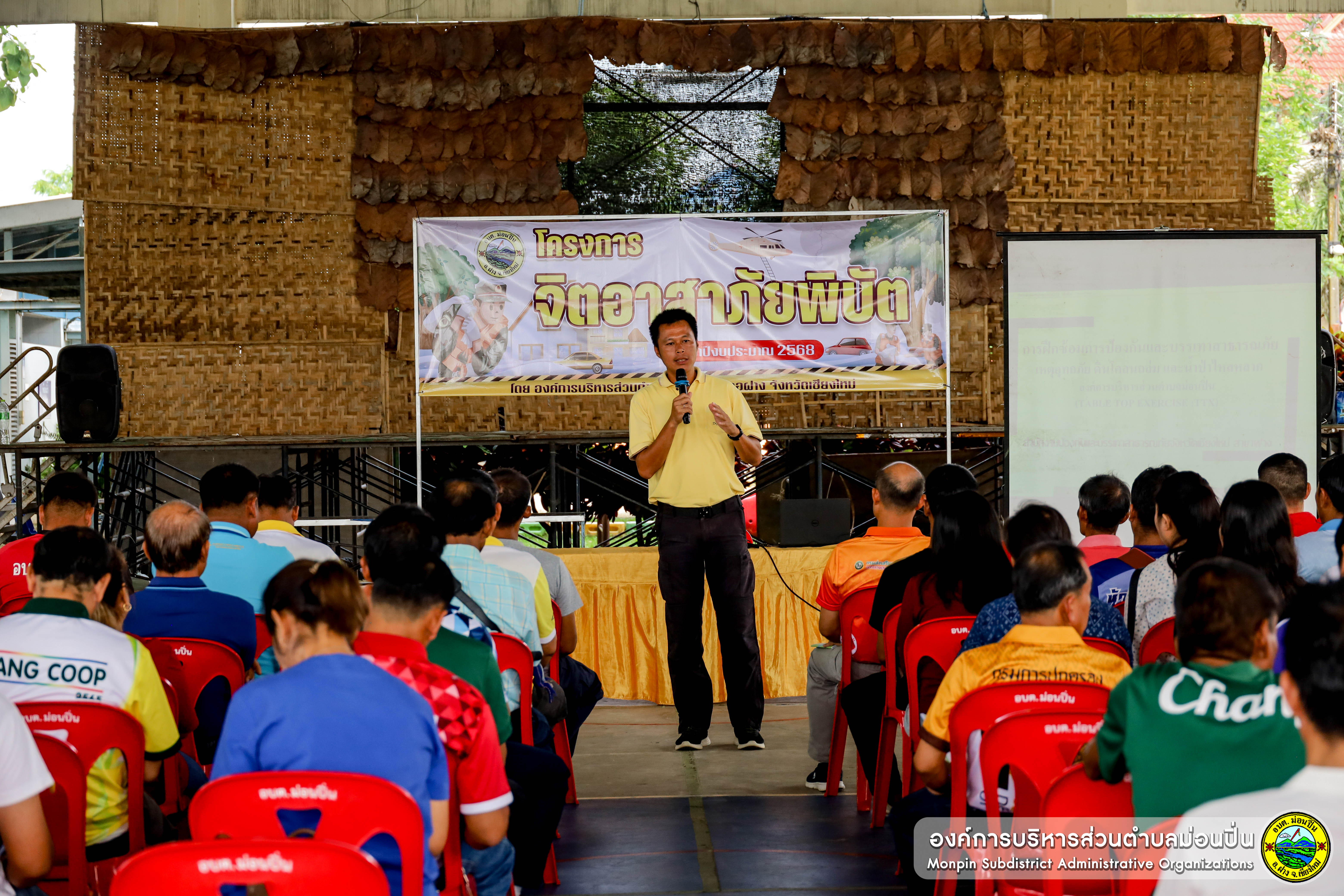 งานป้องกันและบรรเทาสาธารณภัย อบต.ม่อนปิ่น จัดโครงการจิตอาสาภัยพิบัติ ประจำปีงบประมาณ 2568 เพื่อจัดตั้งชุดปฏิบัติการจิตอาสาภัยพิบัติ ประจำองค์การบริหารส่วนตำบลม่อนปิ่น ที่สามารถปฏิบัติหน้าที่ช่วยเหลือเจ้าพนักงานป้องกันและบรรเทาสาธารณภัย ส่งเสริมชุดปฏิบัติการจิตอาสาภัยพิบัติ ประจำองค์การบริหารส่วนตำบลม่อนปิ่น ได้มีความรู้ ความเข้าใจ ในการจัดการสาธารณภัย ระบบบัญชาการเหตุการณ์ (Incident Command System : ICS) การควบคุมสั่งการ การบริหารจัดการสาธารณภัยในพื้นที่เกิดเหตุที่มีรูปแบบและมาตรฐานเดียวกัน พัฒนาระบบการปฏิบัติงานของชุดปฏิบัติการจิตอาสาภัยพิบัติประจำองค์การบริหารส่วนตำบลม่อนปิ่น ในภาวะฉุกเฉินให้เป็นระบบ รวดเร็ว และทันต่อเหตุการณ์ สนับสนุนโครงการจิตอาสาพระราจทาน 904 วปร. ในระดับพื้นที่ให้มีความเข้มแข็ง อันจะส่งผลให้ประชาชนในพื้นที่มีความปลอดภัยในชีวิตและทรัพย์สินได้อย่างรวดเร็ว โดยมี นายบุญทา จันทรา นายกฯ เป็นประธาน พร้อมด้วย นางอารีย์ สุริยะ รองนายกฯ นายศิรภพ สุจาคำ รองนายกฯ นายศรีวรรณ สุภา รองปลัดฯ รักษาราชการแทนปลัดฯ สมาชิกสภาฯ กำนัน - ผู้ใหญ่บ้าน ฝ่ายปกครอง ชรบ. และประชาชนจิตอาสา ในพื้นที่ตำบลม่อนปิ่น เข้าร่วมโครงการฯ ณ อาคารอเนกประสงค์ องค์การบริหารส่วนตำบลม่อนปิ่น อำเภอฝาง จังหวัดเชียงใหม่