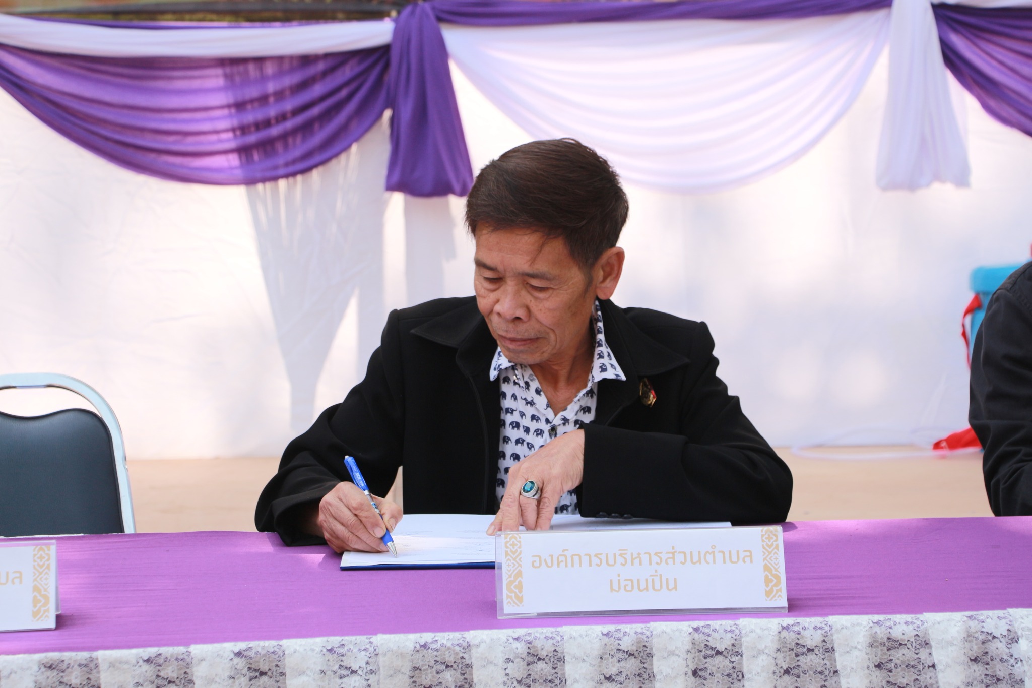 โดยมี ว่าที่ร้อยตรี นพรัตน์ ศุภกิจโกศล นายอำเภอฝาง เป็นประธานในพิธีเปิด นายบุญทา จันทรา นายก อบต.ม่อนปิ่น นางอารีย์ สุริยะ รองนายก อบต.ม่อนปิ่น นายณัฏฐพล รินแก้ว ประธานสภาฯ พร้อมด้วย สมาชิกสภาฯ กำนัน - ผู้ใหญ่บ้าน ตำบลม่อนปิ่น กองร้อยทหารม้าที่ 4 หน่วยเฉพาะกิจไชยานุภาพ โรงพยาบาลส่งเสริมสุขภาพ ตำบลบ้านม่อนปิ่น โรงพยาบาลส่งเสริมสุขภาพตำบลบ้านม่วงชุม ศูนย์พัฒนาการศึกษาตำบลม่อนปิ่น สำนักงานคุมประพฤติจังหวัดเชียงใหม่ สาขาฝาง สหกรณ์ผู้ปลูกหอมหัวใหญ่ฝาง จำกัด อุ้มฮุ่ม โฮมสเตย์ ประชาชนตำบลม่อนปิ่น เข้าร่วมพิธีและร่วมลงนามบันทึกข้อตกลง (MOU) ว่าด้วยการควบคุมไฟป่าและป้องกันแก้ไขปัญหาหมอกควัน ณ บ้านม่วงชุม หมู่ที่ 10 ตำบลม่อนปิ่น อำเภอฝาง จังหวัดเชียงใหม่