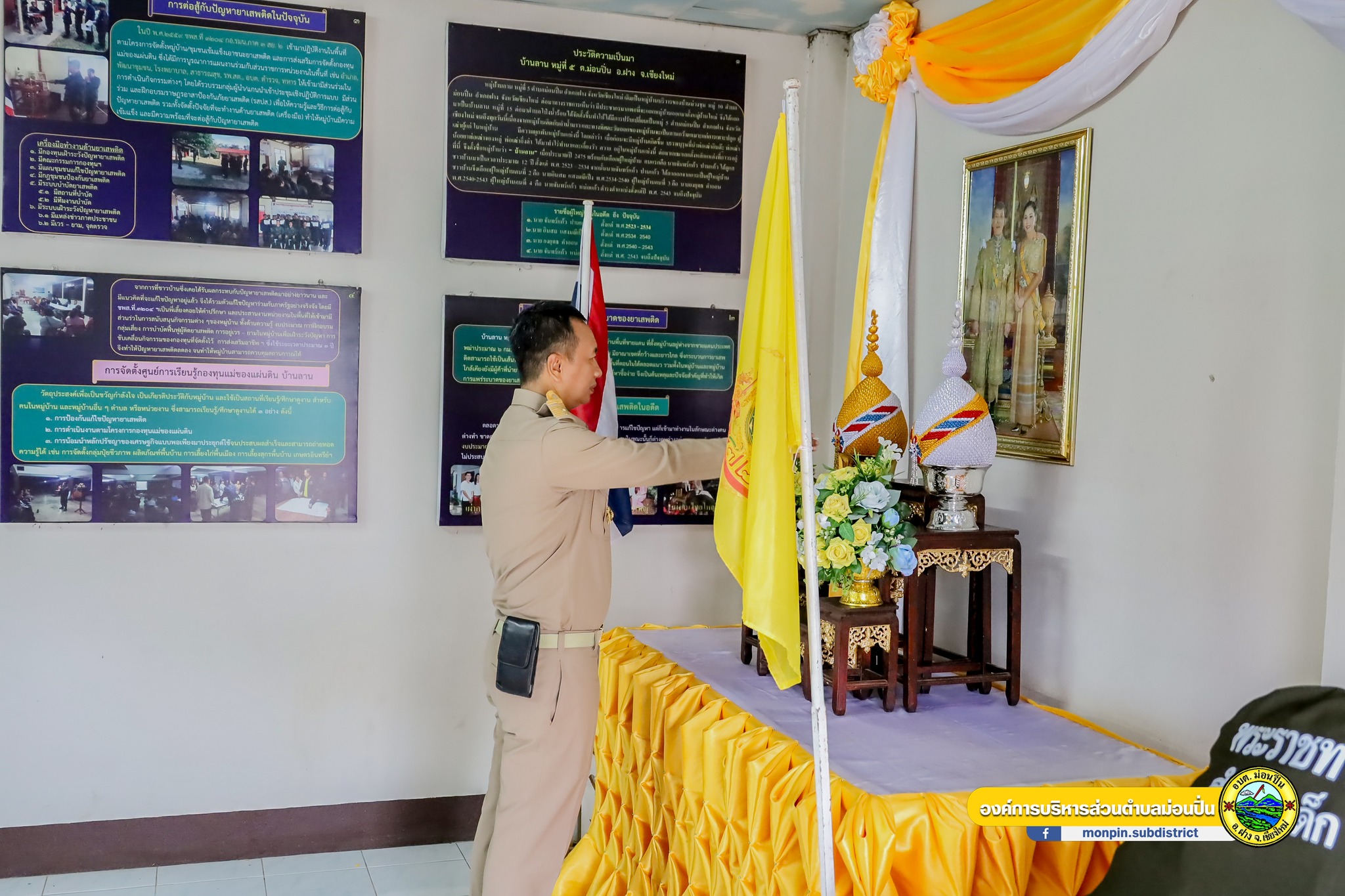3 ตุลาคม 2567 นายบุญทา จันทรา นายกองค์การบริหารส่วนตำบลม่อนปิ่น นางอารีย์ สุริยะ รองนายกองค์การบริหารส่วนตำบลม่อนปิ่น หัวหน้าส่วนราชการ พร้อมด้วย สมาชิกกิ่งกาชาดอำเภอฝาง สมาชิกชมรมแม่บ้านมหาดไทยอำเภอฝาง กำนัน และผู้ใหญ่บ้าน นำครอบครัวผู้ประสบอุทกภัยในพื้นที่ เข้ารับมอบสิ่งของพระราชทานสำหรับเด็ก ตามที่มูลนิธิราชประชานุเคราะห์ในพระบรมราชูปถัมภ์ ได้แจ้งว่าพระบาทสมเด็จพระเจ้าอยู่หัว และสมเด็จพระนางเจ้าบรมราชินีฯ ทรงพระกรุณาโปรดเกล้าโปรดกระหม่อม ให้นายพลากร สุวรรณรัตน์ องคมนตรี เชิญสิ่งของพระราชทานสำหรับเด็กมอบแก่ครอบครัวผู้ประสบอุทกภัย โดยมีว่าที่ร้อยตรีนพรัตน์ ศุภกิจโกศล นายอำเภอฝาง เป็นประธานเชิญสิ่งของพระราชทานสำหรับเด็กมอบแก่ครอบครัวผู้ประสบอุทกภัยในตำบลม่อนปิ่น จำนวน 11 ราย