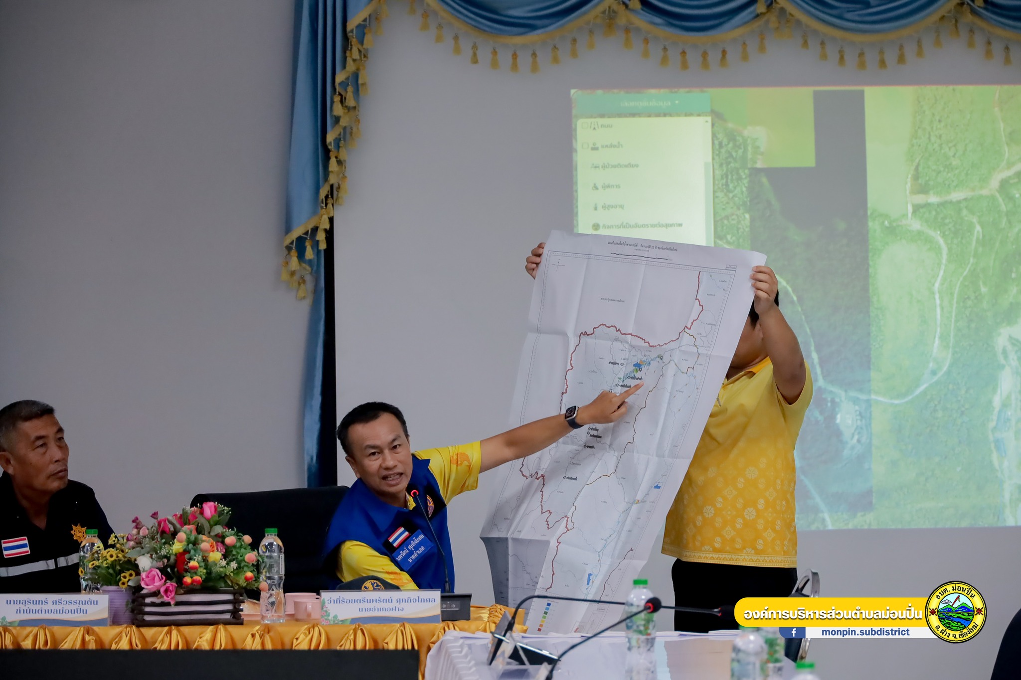 นายบุญทา จันทรา นายกองค์การบริหารส่วนตำบลม่อนปิ่น นายศิรภพ สุจาคำ รองนายกองค์การบริหารส่วนตำบลม่อนปิ่น พร้อมด้วย นางสาวนลินรัตน์ สมเชียงใต้ รองนายกองค์การบริหารส่วนตำบล รักษาราชการแทน นายกองค์การบริหารส่วนตำบลโป่งน้ำร้อน ผู้ใหญ่บ้าน - ฝ่ายปกครอง ประชุมประชาคมการหาแนวทางแก้ไขปัญหาฝายป่าแต้ง และลงพื้นที่ตรวจสอบความเสียหายของฝายป่าแต้ง บริเวณ บ้านหัวฝาย ตำบลโป่งน้ำร้อน จากเหตุอุทกภัยในห้วงเดือนกันยายน 2567 ที่ผ่านมา เพื่อวางแผนบริหารจัดการน้ำและใช้ประโยชน์ในด้านการเกษตรและอุปโภคบริโภคต่อไป