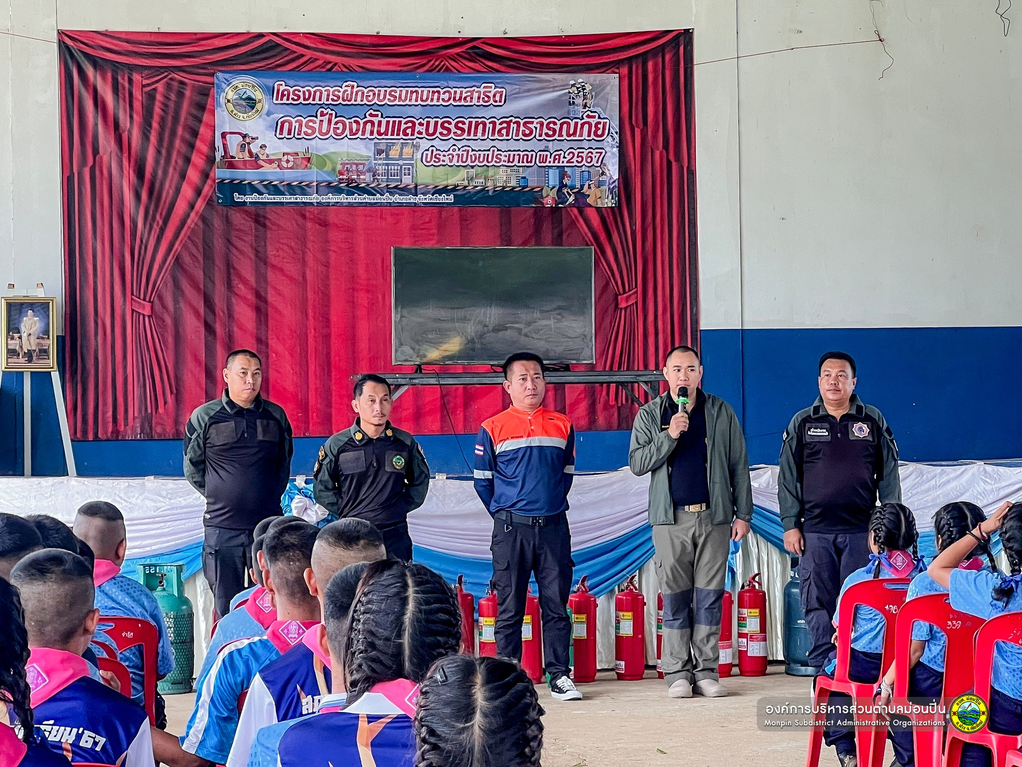 งานป้องกันและบรรเทาสาธารณภัย องค์การบริหารส่วนตำบลม่อนปิ่น ได้ดำเนินโครงการฝึกอบรมทบทวนสาธิตการป้องกันและบรรเทาสาธารณภัย ประจำปีงบประมาณ พ.ศ. 2567 ให้แก่คณะครูและนักเรียนของโรงเรียนบ้านลาน