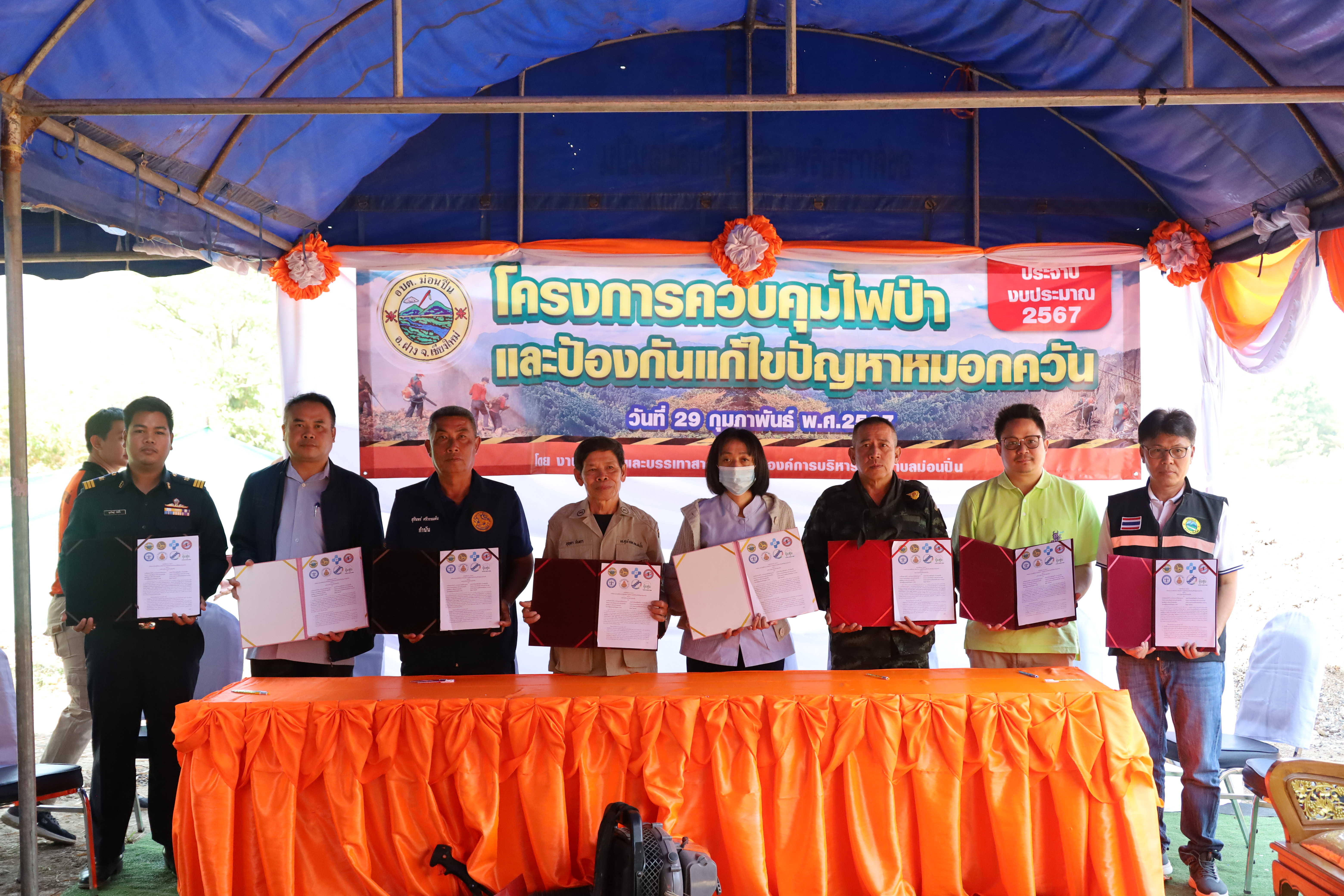 พิธีเปิดโครงการฯ พร้อมทั้งร่วมลงนาม ในบันทึกข้อตกลงความร่วมมือ (MOU) ป้องกันควบคุมไฟป่าและหมอกควัน ประจำปี ๒๕๖๗ ณ บ้านม่วงชุม หมู่ที่10 ตำบลม่อนปิ่น