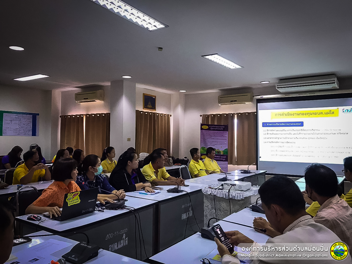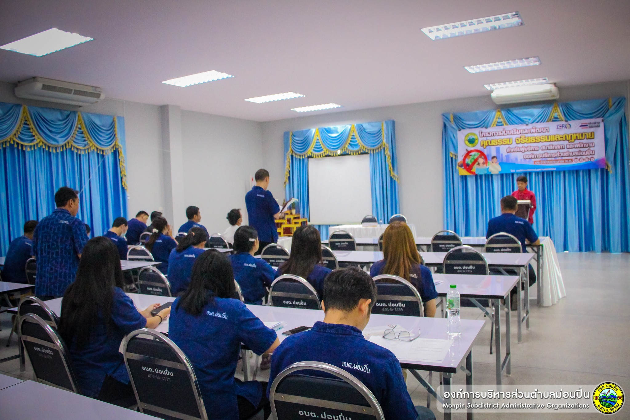 องค์การบริหารส่วนตำบลม่อนปิ่น ดำเนินโครงการส่งเสริมและพัฒนาคุณธรรมจริยธรรมและกฎหมาย สำหรับคณะผู้บริหาร สมาชิกสภา และพนักงานองค์การบริหารส่วนตำบลม่อนปิ่น ประจำปีงบประมาณ 2566 เพื่อส่งเสริมให้ผู้เข้าร่วมการอบรม มีกระบวนทัศน์ วัฒนธรรม และค่านิยมปฏิบัติงานที่มุ่งเพิ่มสมรรถนะ และพัฒนาระบบราชการไทยโดยยึดหลักการบริหารจัดการบ้านเมืองที่ดี หลักเศรษฐกิจพอเพียงเป็นแนวทางส่งเสริมคุณธรรม จริยธรรม และหลักธรรมพระพุทธศาสนาให้กับผู้เข้าร่วมอบรมในการนำไปเพิ่มประสิทธิภาพในการปฏิบัติงาน การพัฒนาคุณภาพชีวิต และการทำงานให้มีคุณลักษณะ เป็น ข้าราชการยุคใหม่ที่มีคุณธรรม จริยธรรม เพื่อให้ข้าราชการ และเจ้าหน้าที่ของรัฐทุกระดับมีความรู้ความเข้าใจและยึดมั่นในหลักคุณธรรม จริยธรรม และนำหลักทางพระพุทธศาสนามาปรับใช้ในการปฏิบัติงานให้บรรลุผลสัมฤทธิ์และเพื่อให้คณะผู้บริหาร สมาชิกสภา พนักงานส่วนตำบล และพนักงานจ้างขององค์การบริหารส่วนตำบลม่อนปิ่น มีความรู้ด้านกฎหมาย กฎระเบียบ ข้อบังคับ สามารถนำไปใช้ในการทำงานให้ถูกต้อง โดยมีนายบุญทา จันทรา นายกองค์การบริหารส่วนตำบลม่อนปิ่น พร้อมด้วย นางอารีย์ สุริยะ รองนายกฯ นายศิรภพ สุจาคำ รองนายกฯ นายณัฏฐพล รินแก้ว ประธานสภาฯ สมาชิกสภาฯ และนายวรเชษฐ์ เดชพงษ์วรานนท์ ปลัดฯ พร้อมด้วยหัวหน้าส่วนราชการ ข้าราชการ พนักงาน องค์การบริหารส่วนตำบลม่อนปิ่น เข้าร่วมอบรม ณ ห้องประชุมองค์การบริหารส่วนตำบลม่อนปิ่น
