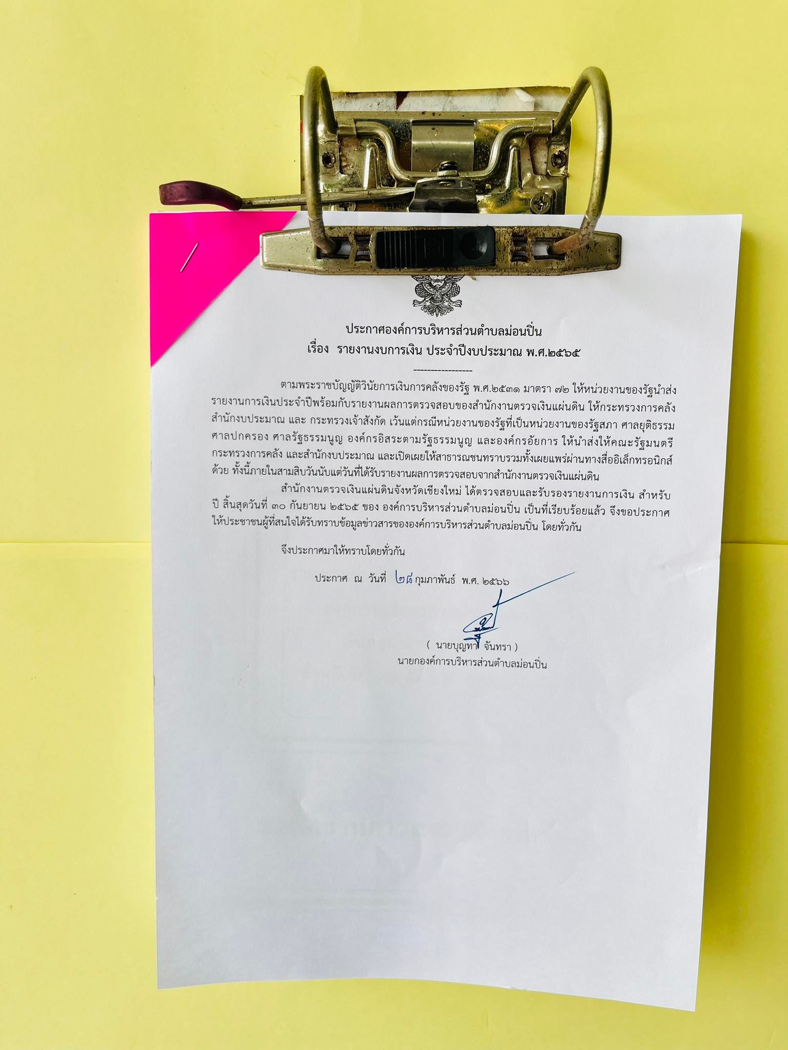 สำนักงานตรวจเงินแผ่นดินจังหวัดเชียงใหม่ ได้ตรวจสอบและรับรองรายงานการเงินสำหรับปี สิ้นสุดวันที่ 30 กันยายน 2567 ของ องค์การบริหารส่วนตำบลม่อนปิ่น เป็นที่เรียบร้อยแล้วจึงขอประกาศให้ประชาชนผู้ที่สนใจได้รับทราบข้อมูลข่าวสารขององค์การบริหารส่วนตำบลม่อนปิ่น โดยทั่วกัน