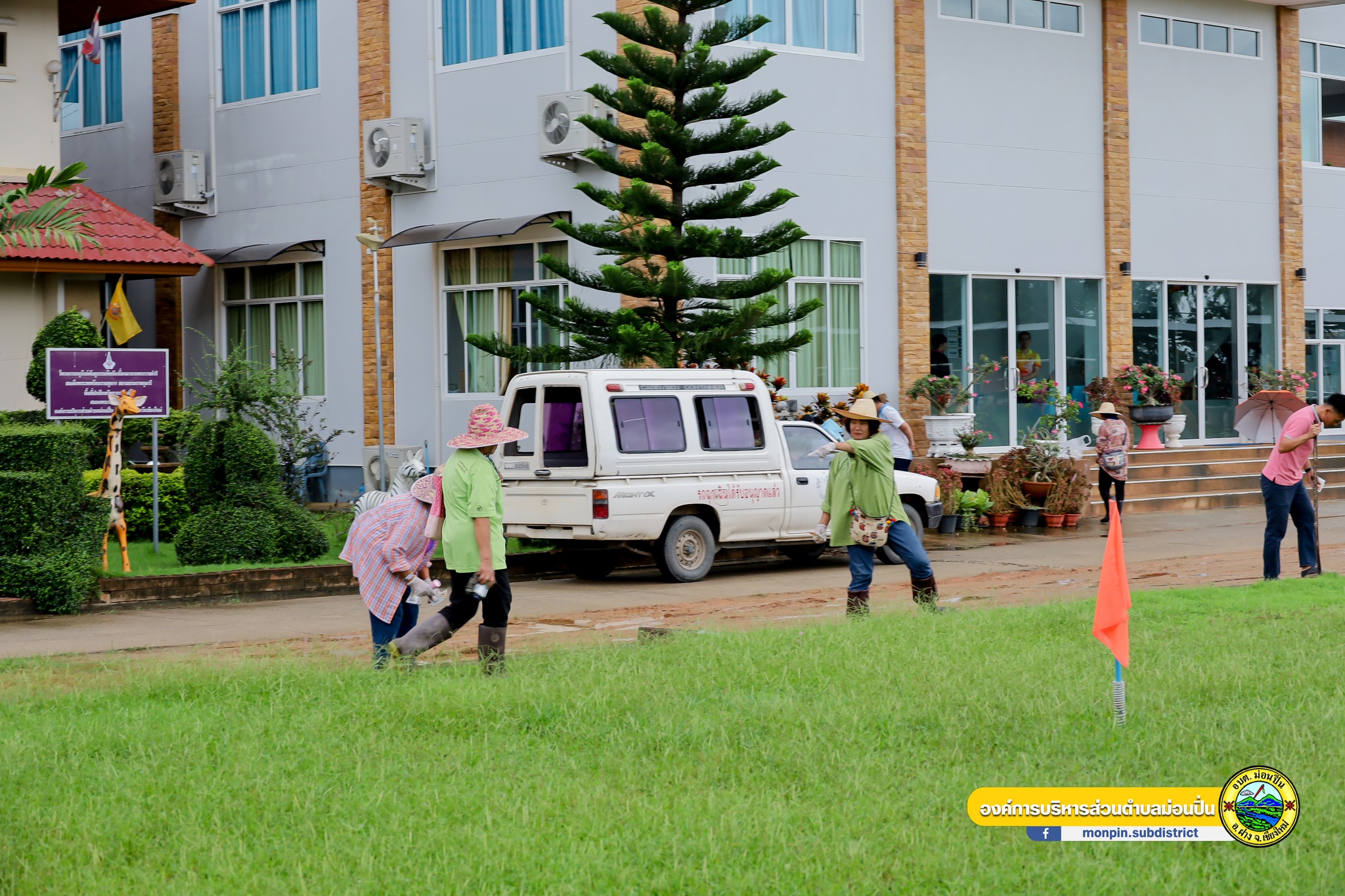 แผนงานสาธารณสุข อบต.ม่อนปิ่น ร่วมกับ โรงพยาบาลส่งเสริมสุขภาพตำบลบ้านม่อนปิ่น อาสาสมัครสาธารณสุขประจําหมู่บ้าน (อสม.) บ้านม่อนปิ่น ลงพื้นที่สำรวจแหล่งน้ำขังและใส่ทรายเทมีฟอส ในจุดเสี่ยงที่อาจเกิดเป็นแหล่งเพาะพันธุ์ลูกน้ำยุงลาย ซึ่งเป็นพาหะของการแพร่ระบาดของโรคไข้เลือดออก ในบริเวณอาคารสำนักงาน องค์การบริหารส่วนตำบลม่อนปิ่น