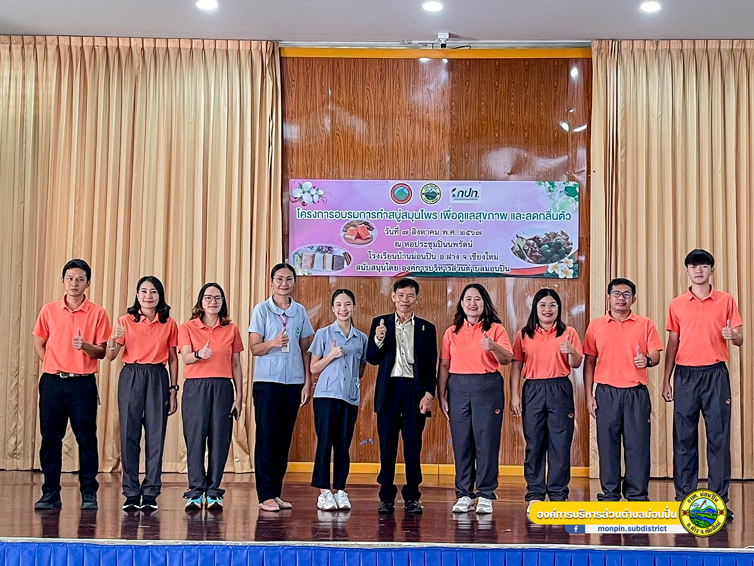 7 สิงหาคม 2567 นายบุญทา จันทรา นายกองค์การบริหารส่วนตำบลม่อนปิ่น เป็นประธานในพิธีเปิดโครงการอบรมการทำสบู่สมุนไพร เพื่อดูแลสุขภาพ และลดกลิ่นตัว ประจำปีงบประมาณ พ.ศ.2567 เพื่อลดปัญหากลิ่นตัวรุนแรงและแก้ปัญหาโรคผิวหนัง กลากเกลื้อน ในนักเรียน เพื่อให้นักเรียนรู้วิธีในการรักษาสุขอนามัยส่วนบุคคล ให้นักเรียนได้นำสมุนไพรใกล้ตัวมาใช้ในการทำสบู่สมุนไพร และสามารถนำความรู้ที่ได้จากการอบรมไปเผยแพร่ต่อสาธารณะชนได้ โดยได้รับการสนับสนุนงบประมาณจากกองทุนหลักประกันสุขภาพองค์ส่วนตำบลม่อนปิ่น ณ หอประชุมปิ่นนพรัตน์ โรงเรียนบ้านม่อนปิ่น