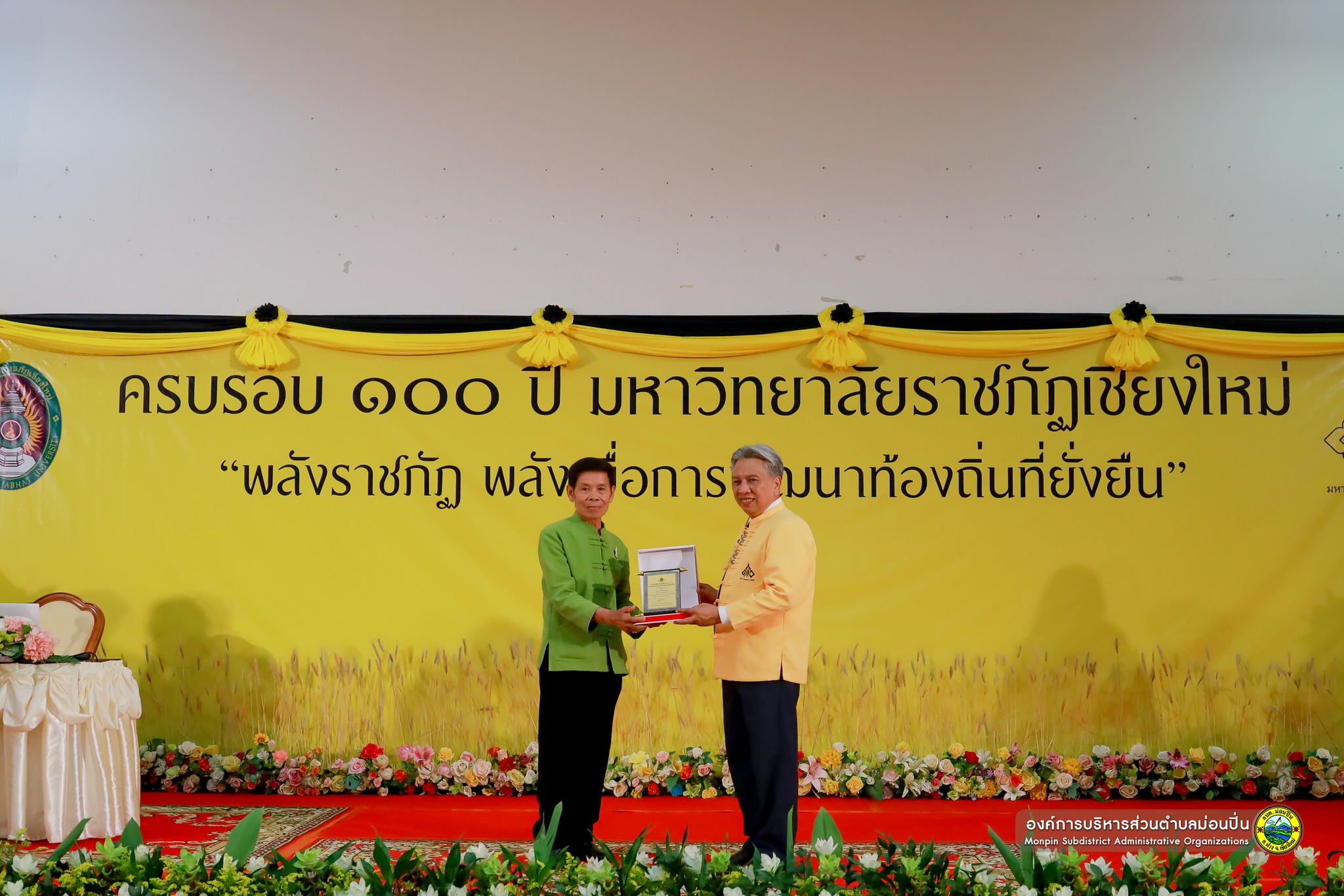 4 กรกฎาคม 2567 นายบุญทา จันทรา นายกอบต.ม่อนปิ่น เข้ารับโล่ประกาศเกียรติคุณ “หน่วยงานพัฒนาท้องถิ่นดีเด่น” ในพิธีเฉลิมฉลองครบรอบ 100 ปี แห่งการสถาปนา มหาวิทยาลัยราชภัฏเชียงใหม่ ณ ห้องประชุม อาคาร 90 ปี ราชภัฏเชียงใหม่ มหาวิทยาลัยราชภัฏเชียงใหม่ ทั้งนี้ได้นำตัวแทนผู้สูงอายุร่วมชมนิทรรศการ เสริมสร้างทักษะการทำผลิตภัณฑ์ท้องถิ่น และร่วมออกบูธนิทรรศการ “ให้โอกาส สร้างอาชีพ” ตามโครงการสร้างอาชีพจากการพัฒนาผลิตภัณฑ์ ฐานทรัพยากรชุมชน กลุ่มผู้บำบัดยาเสพติดและผู้สูงอายุ ตำบลม่อนปิ่น อำเภอฝาง จังหวัดเชียงใหม่ โดยบูรณาการ่วมกับ วิทยาลัยนานาชาติ มหาวิทยาลัยราชภัฏเชียงใหม่