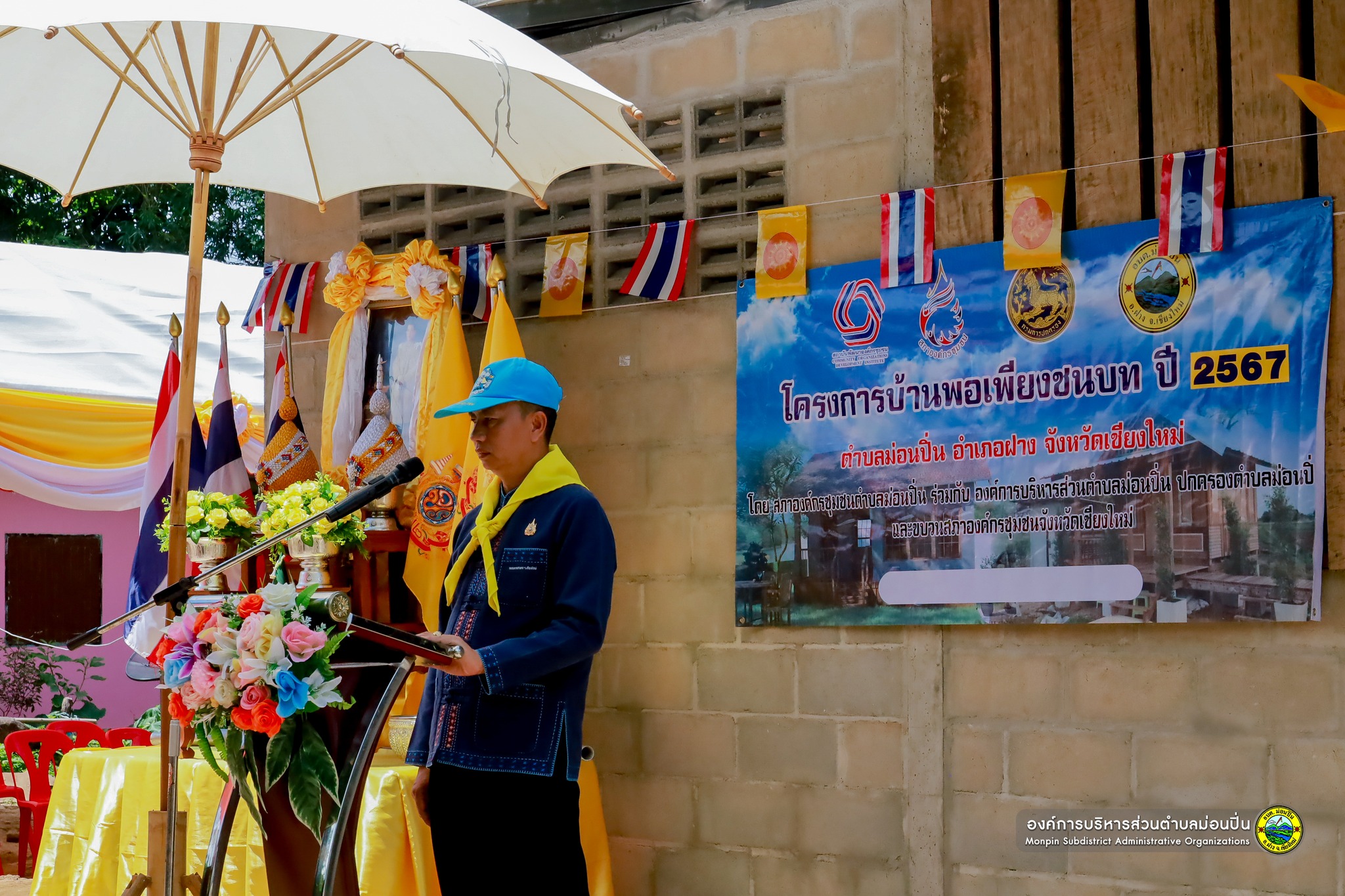 10 กรกฎาคม 2567 นายบุญทา จันทรา นายกอบต.ม่อนปิ่น นางอารีย์ สุริยะ รองนายกอบต.ม่อนปิ่น นายศิรภพ สุจาคำ รองนายกอบต.ม่อนปิ่น พร้อมด้วย สมาชิกสภาฯ กำนัน-ผู้ใหญ่บ้านตำบลม่อนปิ่น พัฒนาการอำเภอฝาง สาธารณสุขอำเภอฝาง สมาชิกกิ่งกาชาดอำเภอฝาง สมาชิกชมรมแม่บ้านมหาดไทยอำเภอฝาง ตำรวจ ทหาร จัดพิธีส่งมอบบ้านตามโครงการบ้านพอเพียงชนบท ปี 2567 ซึ่งได้รับการสนับสนุนจากสถาบันพัฒนาองค์กรชุมชน (องค์การมหาชน) หรือ พอช. ในการปรับปรุง ซ่อมแซม ที่อยู่อาศัยให้กับผู้มีรายได้น้อยที่มีปัญหาความเดือดร้อนด้านที่อยู่อาศัย ให้มีที่อยู่อาศัยที่ดีขึ้น มีความมั่นคง ในพื้นที่ตำบลม่อนปิ่น จำนวน 8 หลัง โดยมี ว่าที่ร้อยตรีนพรัตน์ ศุภกิจโกศล นายอำเภอฝาง เป็นประธานในพิธีพร้อมทั้งมอบถุงยังชีพ สิ่งของอุปโภคบริโภค และเมล็ดพันธุ์ผักพระราชทาน ให้แก่ครัวเรือนยากจน ทั้ง 8 ครัวเรือน ณ บ้านเลขที่ 142 หมู่ที่ 3 ตำบลม่อนปิ่น อำเภอฝาง จังหวัดเชียงใหม่
