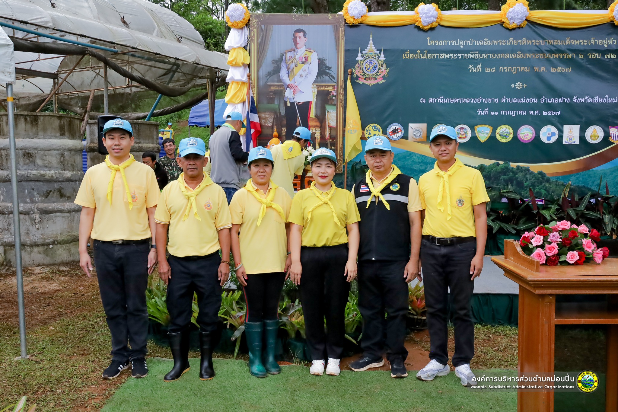 11 กรกฎาคม 2567 นายบุญทา จันทรา นายกอบต.ม่อนปิ่น นายศิรภพ สุจาคำ รองนายก อบต.ม่อนปิ่น พร้อมด้วย ข้าราชการ เจ้าหน้าที่ อบต.ม่อนปิ่น ร่วมโครงการปลูกป่าเฉลิมพระเกียรติสมเด็จพระเจ้าอยู่หัว มหาวชิราลงกรณ บดินทรเทพยวรางกูร เนื่องในโอกาสวันเฉลิมพระชนมพรรษา 6 รอบ 72 พรรษา ในวันที่ 28 กรกฎาคม 2567 โดย มูลนิธิโครงการหลวง สถานีเกษตรหลวงอ่างขาง ร่วมกับหน่วยป้องกันและพัฒนาป่าไม้ฝาง และหน่วยจัดการต้นน้ำแม่เผอะ เพื่อเป็นการแสดงความจงรักภักดีความสามัคคีของประชาชนทุกหมู่เหล่าและสำนึกในพระมหากรุณาธิคุณ ถวายเป็นพระราชกุศลและเป็นการการป้องกันรักษาทรัพยากรป่าไม้ที่เหลือให้คงอยู่ และการฟื้นฟูทรัพยากรป่าไม้ที่เสื่อมโทรมให้ฟื้นคืนความอุดมสมบูรณ์สร้างความชุ่มชื้น เพิ่มออกชิเจนในอากาศ และลดสภาวะโลกร้อน โดยมี ว่าที่ร้อยตรีนพรัตน์ ศุภกิจโกศล นายอำเภอฝาง เป็นประธานในพิธีพร้อมด้วย คณะสงฆ์ หน่วยป้องกันและพัฒนาป่าไม้ฝาง สถานีเกษตรหลวงอ่างขาง หน่วยจัดการต้นน้ำแม่เผอะ อุทยานแห่งชาติดอยผ้าห่มปก ทหาร ร้อย ม.3 บก.ควบคุมผาดำ ฉก.ไชยยานุภาพ ผู้บริหารสถานศึกษา กำนันและผู้ใหญ่บ้านตำบลม่อนปิ่น นักเรียน และประชาชนจิตอาสา ร่วมกันปลูกต้นไม้ จำนวน 1,600 ต้น ในพื้นที่ 13 ไร่ ณ พื้นที่ปลูกป่าบ้านนอแล ตำบลม่อนปิ่น อำเภอฝาง จังหวัดเชียงใหม่