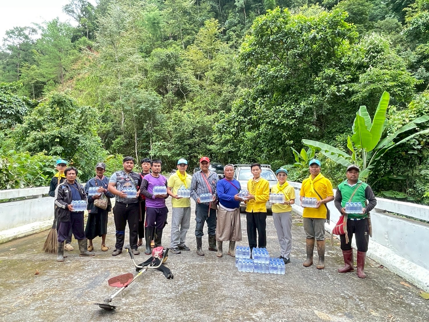 นายบุญทา จันทรา นายกอบต.ม่อนปิ่น พร้อมด้วย นางอารีย์ สุริยะ รองนายก อบต.ม่อนปิ่น ร่วมกิจกรรมจิตอาสาพัฒนาและปรับปรุงภูมิทัศน์เส้นทางด่านปางตอง - บ้านขอบด้ง เนื่องในโอกาสวันเฉลิมพระชนมพรรษา พระบาทสมเด็จพระเจ้าอยู่หัว 28 กรกฎาคม 2568