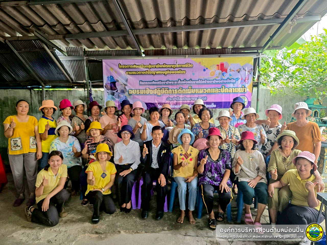 นายบุญทา จันทรา นายก อบต.ม่อนปิ่น เป็นประธานพิธีเปิด โครงการส่งเสริมกลุ่มอาชีพพัฒนาคุณภาพชีวิตตามแนวทางปรัชญาเศรษฐกิจพอเพียง "กิจกรรมส่งเสริมอาชีพระยะสั้นเพื่อเพิ่มรายได้สร้างอาชีพอย่างยั่งยืน อบรมเชิงปฏิบัติการตัดเย็บหมวกและปักลายผ้า" ประจำปีงบประมาณ พ.ศ.2568 เพื่อขยายโอกาสการสร้างอาชีพและรายได้ในชุมชน โดยมีกลุ่มเป้าหมาย เป็นผู้ว่างงาน ผู้ที่ต้องการฝึกอาชีพ สร้างอาชีพหลักและอาชีพเสริม กลุ่มสตรี เยาวชน และผู้ที่สนใจ ณ เย็บปักผ้า บ้านเด่นชัย หมู่ที่ 13 ตำบลม่อนปิ่น อำเภอฝาง จังหวัดเชียงใหม่