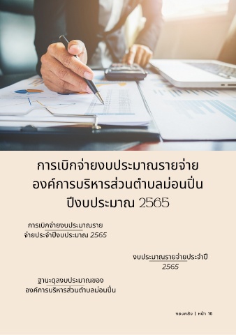 การเบิกจ่ายงบประมาณรายจ่าย ์ ํ องคการบริหารส่วนตาบลม่อนปน ป งบประมาณ 2565 การเบิกจ่ายงบประมาณราย จ่ายประจําป งบประมาณ 2565 งบประมาณรายจ่ายประจําป 2565 ฐานะดุลงบประมาณของ ์ องคการบริหารส่วนตาบลม่อนป น ํ ้ ั กองคลง | หนา 16