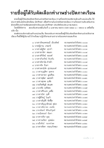 รายชือผูไดรับคัดเลือกทํางานชวงปดภาคเรียน