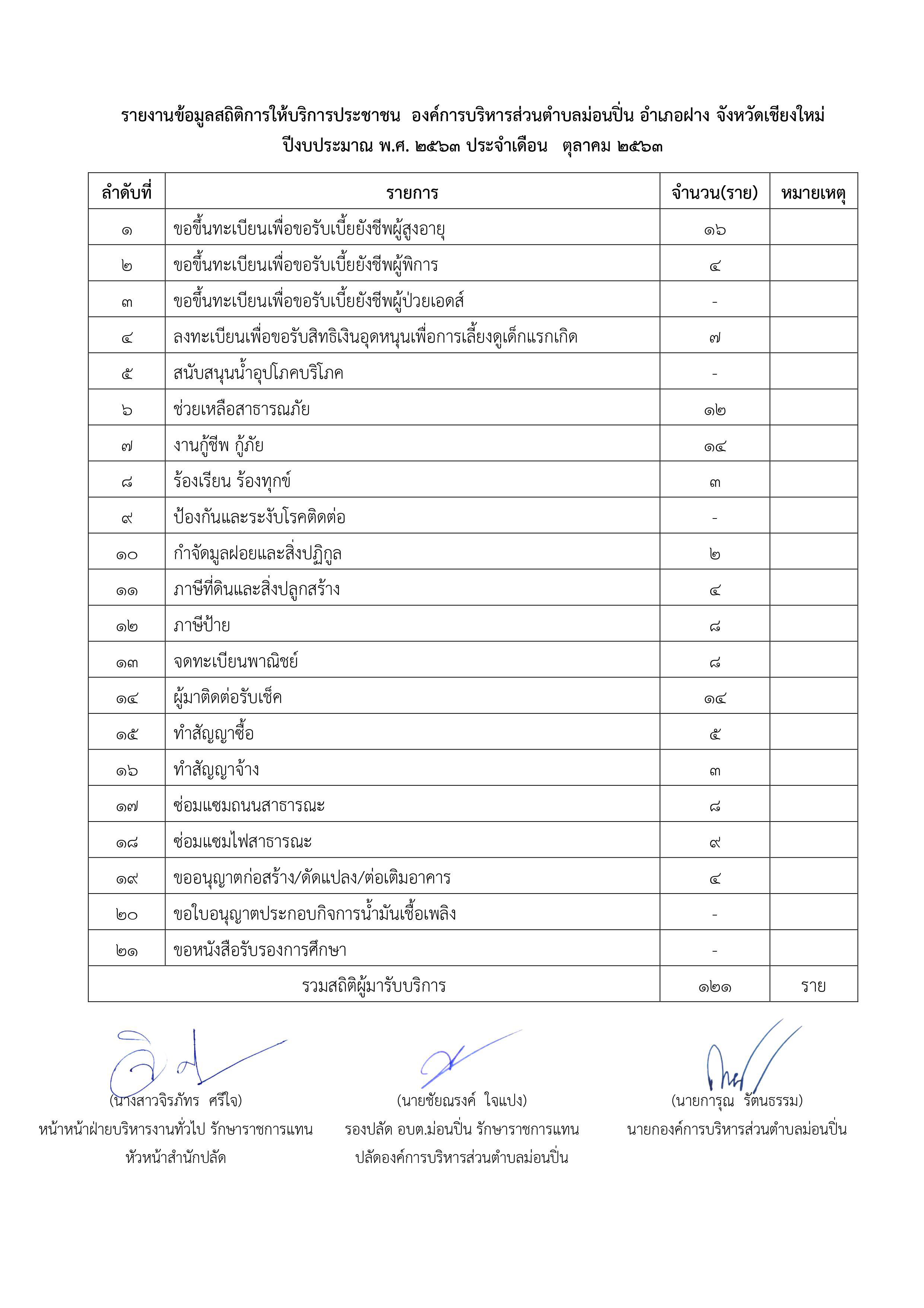 สถิติการให้บริการ ปีงบประมาณ 2564 ประจำเดือน ตุลาคม 2563 สถิติการให้บริการ ปีงบประมาณ 2564 ประจำเดือน ตุลาคม 2563